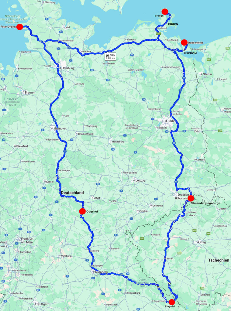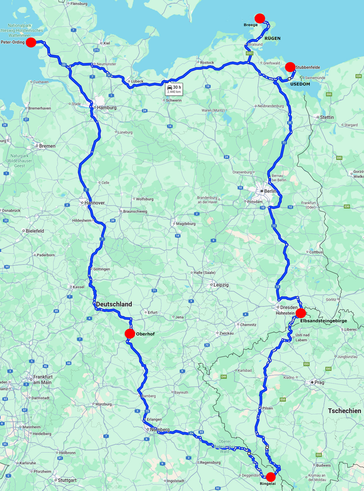 14 Tage durch Ost- und Norddeutschland, vom 07.September bis 20. September 2025, Gesamtstrecke ca. 2450 Km.