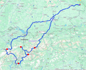Reisezeit von Sonntag, 29. Juni bis Sonntag, 11. Juli 2025 (15 Tage), Gesamtstrecke ca. 1500 Km. Zuerst waren wir 3 Nächte auf einem kleinen Campingplatz in Gadmen am Sustenpass. Um der Schwüle und den täglichen Gewittern auszuweichen fuhren wir über den Grimselpass und den Nufenenpass an den Luganer See in die Lombardei (Italien). Nach 3 Übernachtungen ging es weiter über den Malojapass nach St. Moritz, Silvaplana, Oberengadin (3 Nächte). Das nächste Ziel war die Rheinschlucht und der Pinut-Klettersteig, der älteste Klettersteig der Schweiz, bei Flims (3 Nächte). Zum Abschluss der Schweiz Tour fuhren wir noch nach Scuol im Unterengadin, am Oberlauf des Inns, hier blieben wir 2 Nächte bevor wir über Landeck/München heimreisten.